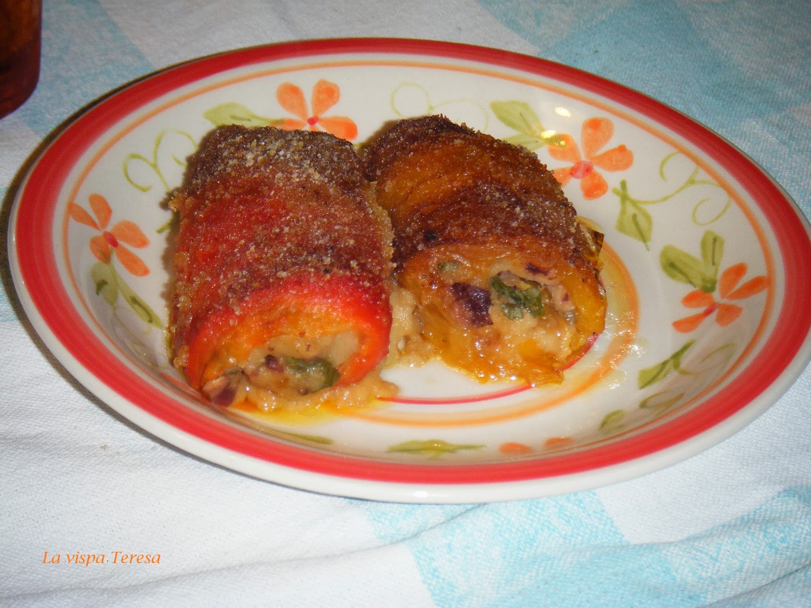 La mia idea quando ho acquistato questi peperoni era di farli al gratin, ma poi mi sono detta, perché non cambiare la forma lasciando invariata la sostanza? Pur volendo cambiare gli ingredienti, non avevo più tempo per andare ad acquistarne altri, ma va bene così, perché il risultato è stato sublime.....eccovi la ricetta augurandovi un buon inizio settimana, baci, baci!!! ;)
